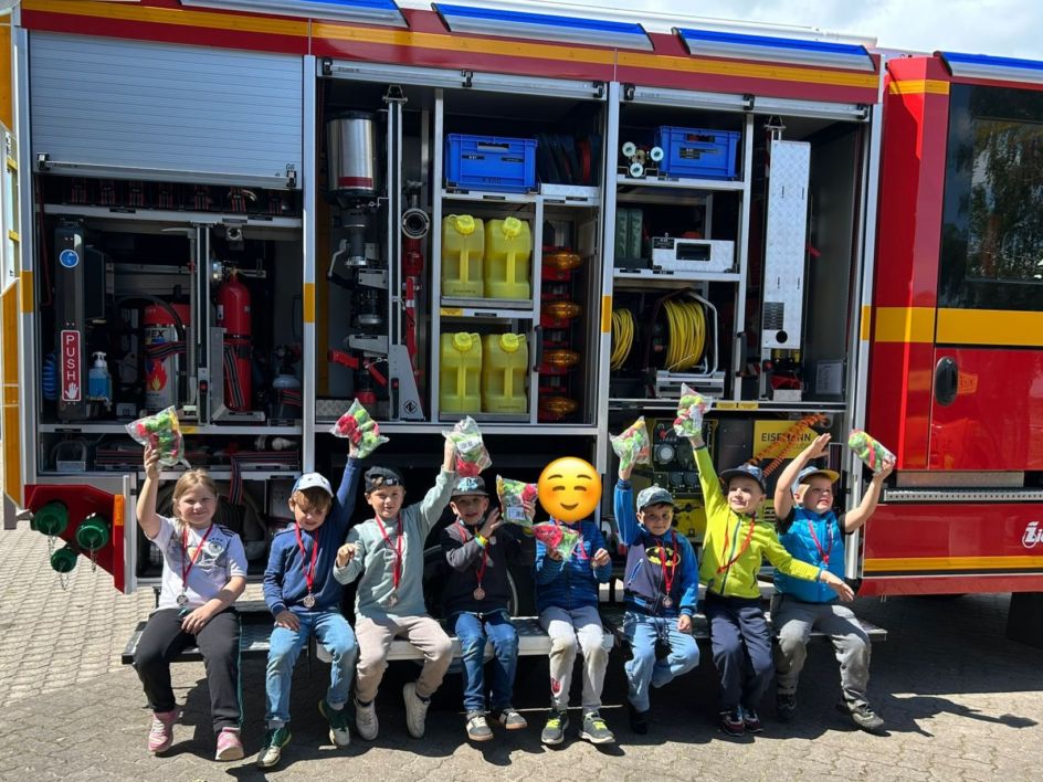 Zum Abschluss gab es noch große Augen: Jeder erhielt eine Medaille 🎖️ und unseren flauschigen Feuerwehr-Drachen als Erinnerung.